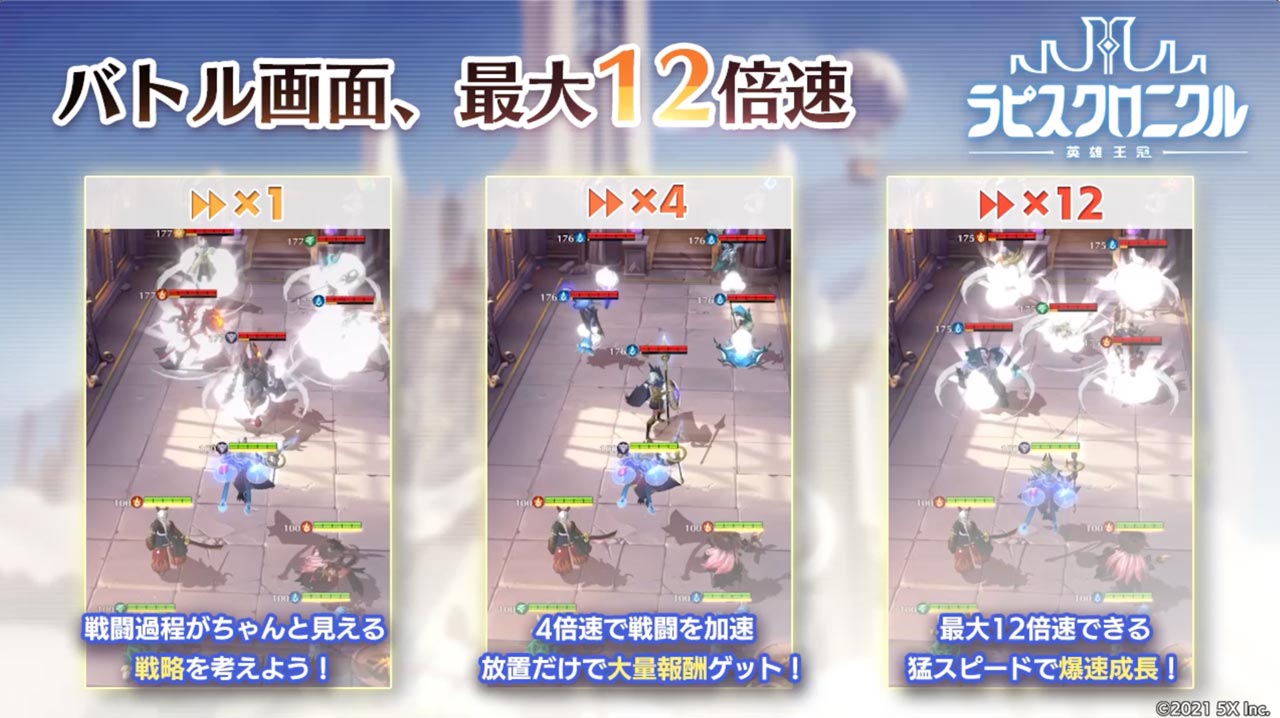 • バトル画面、最大12倍速!猛スピードバトルで時間を有効活用しよう。