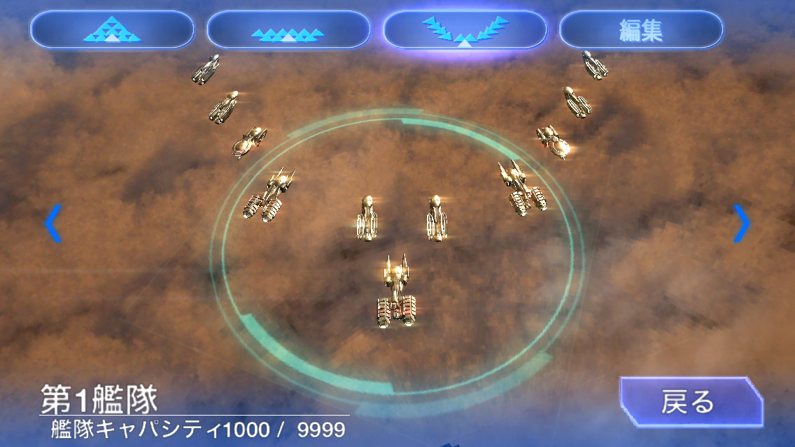 艦隊戦で使用するフォーメーションの設定と空中戦艦の配置をプレイヤーが自由に編成できます。