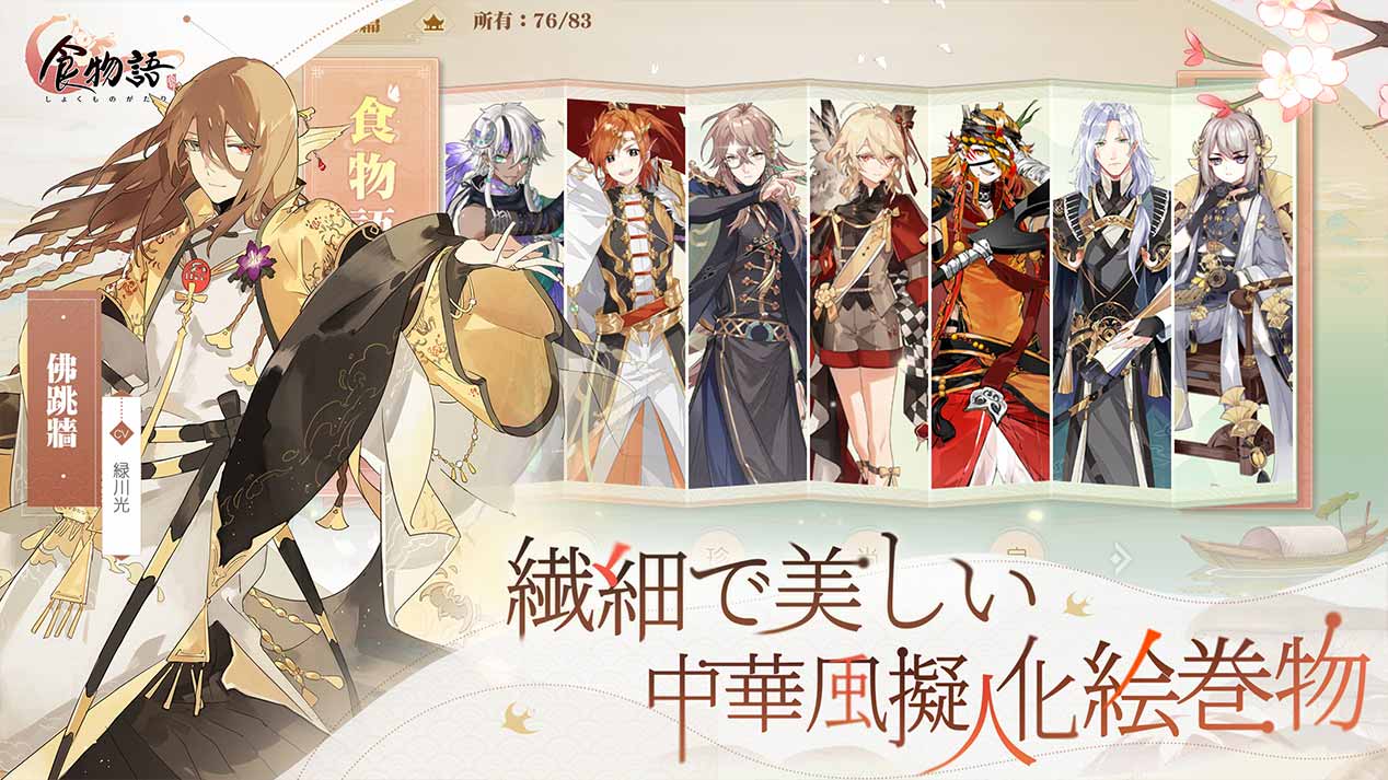 たくさんの伝統的な中華料理が、優秀な絵師の筆によって、異なるタイプの美男子が「食魂(しょくたま)」と化し、あなたの日々に寄り添い、生死を共にします。