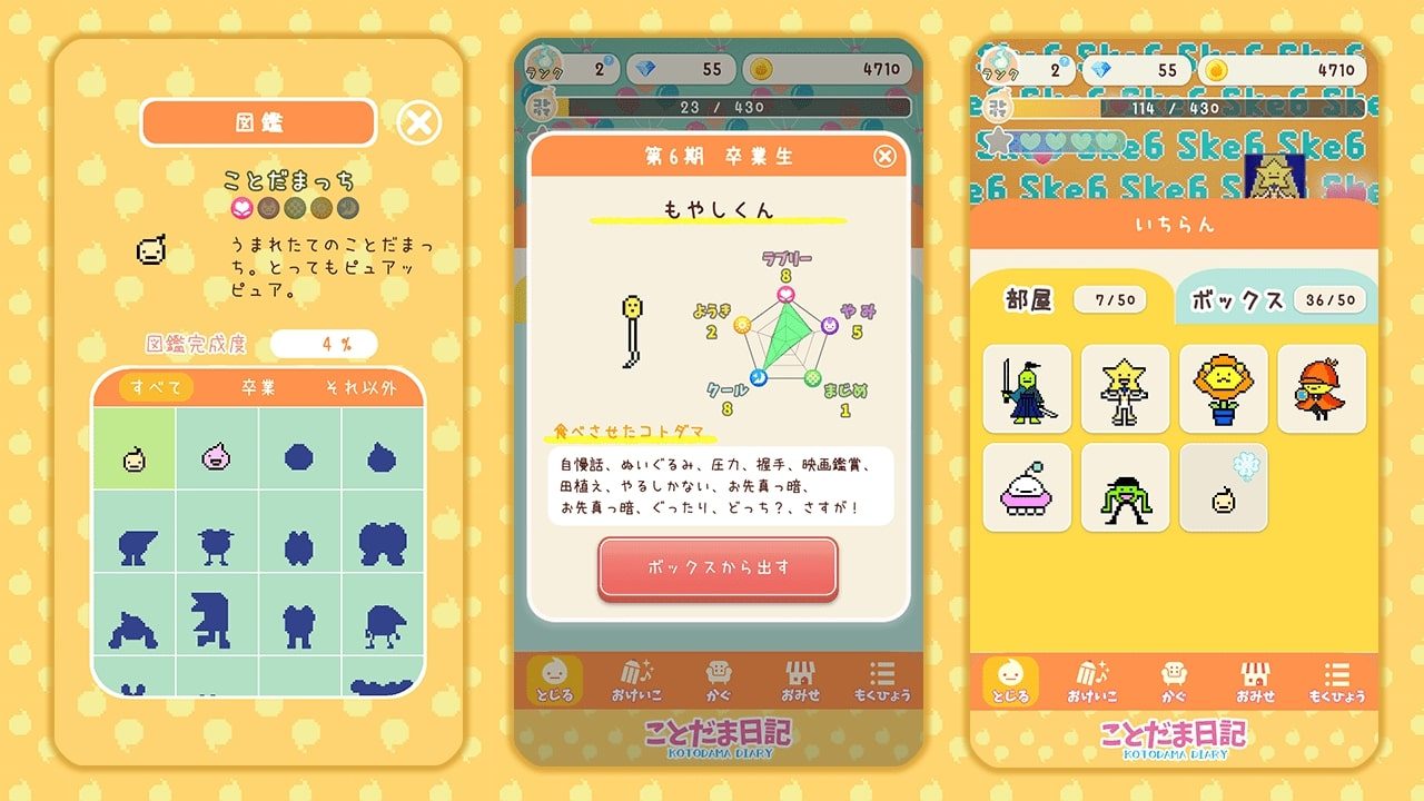 ・見付けたことだまっちは図鑑に登録されます。 ・卒業したことだまっちのプロフィールが見られます。 ・卒業後のことだまっちを画面に表示するかどうかをボックスに出し入れすることで選べます。