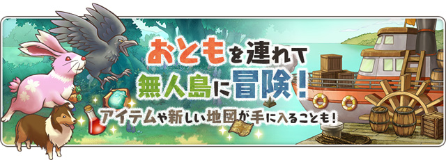 このゲームでは、海エリアが登場。近くの無人島に探検に行くこともできます。探検の途中でアイテムが入った宝箱を見つけることも!…ただし、無人島には危険な生物が沢山潜んでいます。危険性物に遭遇したときは「おとも動物」があなたを守ってくれます。