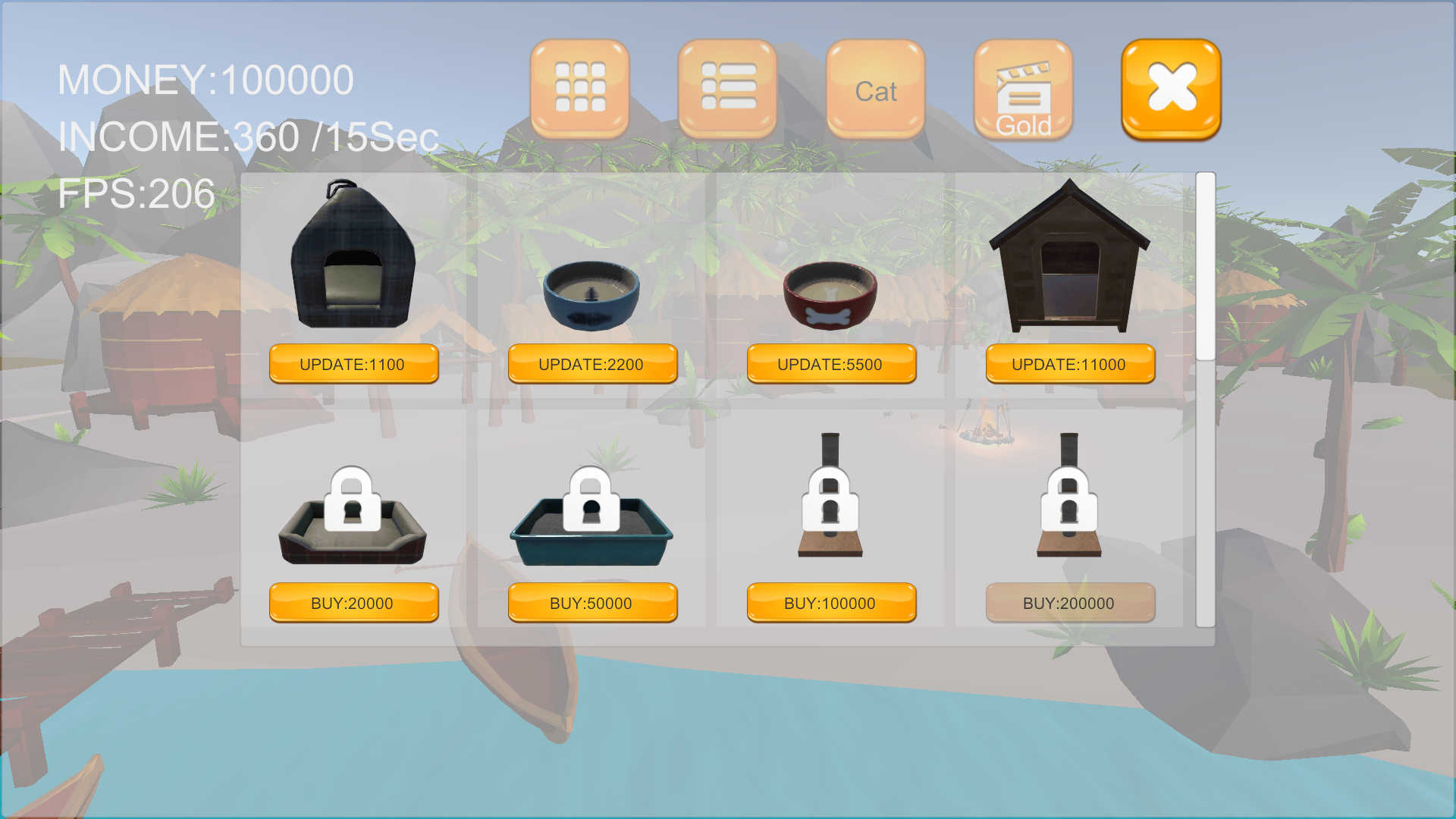 集めたゴールドを使用して、猫をアップデートします。 猫のレベルが上がれば上がるほど、ゴールドが集まります。