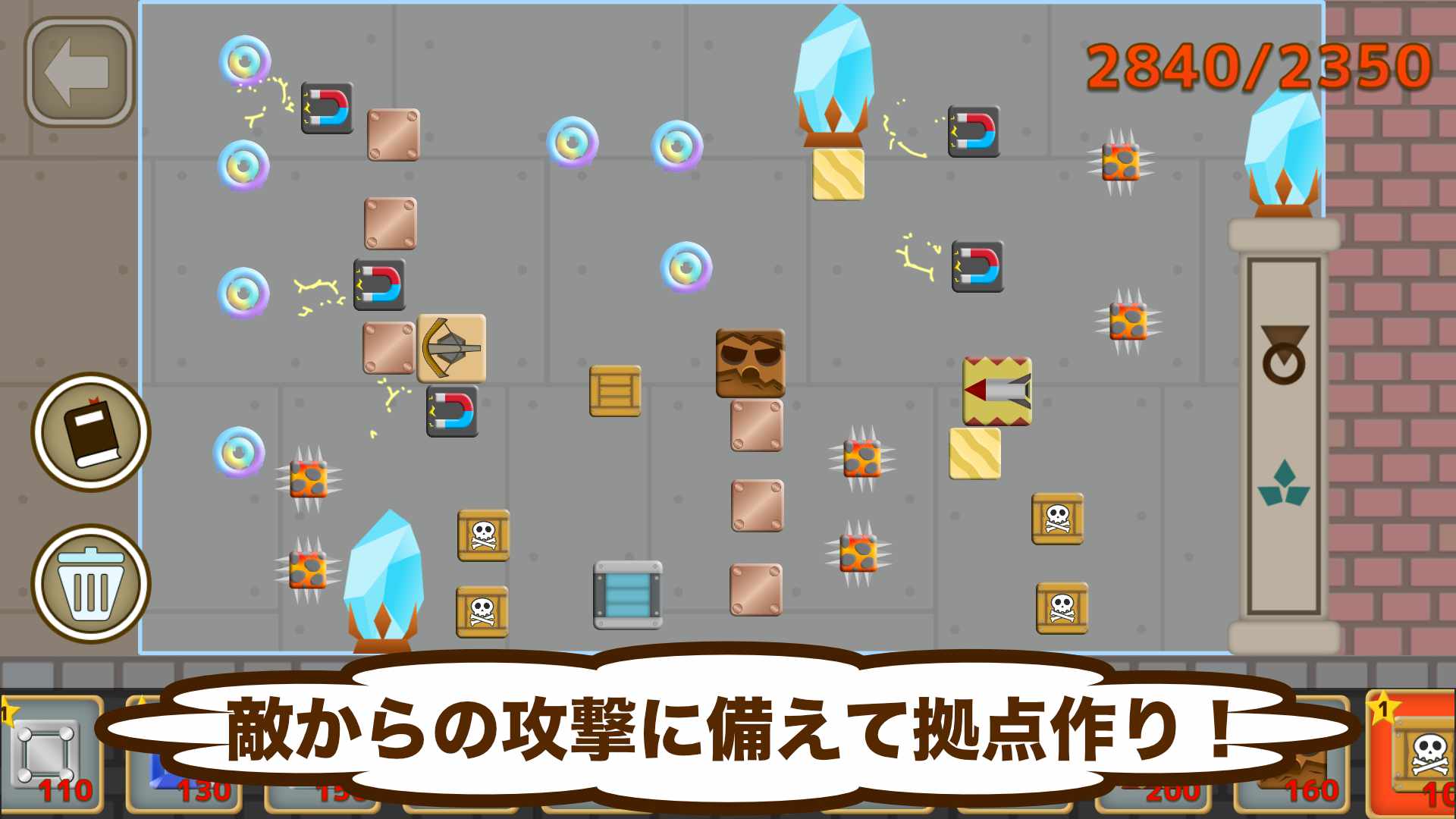 敵は自分がオフラインの時に攻めてくるので、負けないように防壁を築きます。 メインクリスタルが破壊されると負けてランクが減ってしまうので、敵が攻めにくい配置を考えましょう。