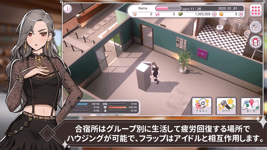 合宿所はグループ別に生活して疲労回復する場所で ハウジングが可能で、フラップはアイドルと相互作用します。