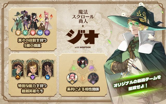 英雄は各3つの系列と 5つの職業に分かれます。チームの要になる超越英雄1人を中心に相性を考え、チームをどう編成するのかが重要です!