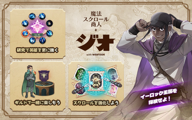 冒険に出る前に準備は必須。イーロック王国の色んなところで英雄を強力にさせるための研究や魔法スクロールの強化を行ったり、ギルドに加入して友達と楽しもう!