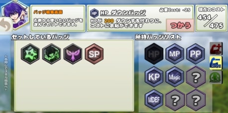 能力アップや、獲得経験値アップなど、 戦闘で効果を発揮する「バッジ」というアイテムが存在します。 レアなバッジの中には、翼を使って空中移動できるものもあります。