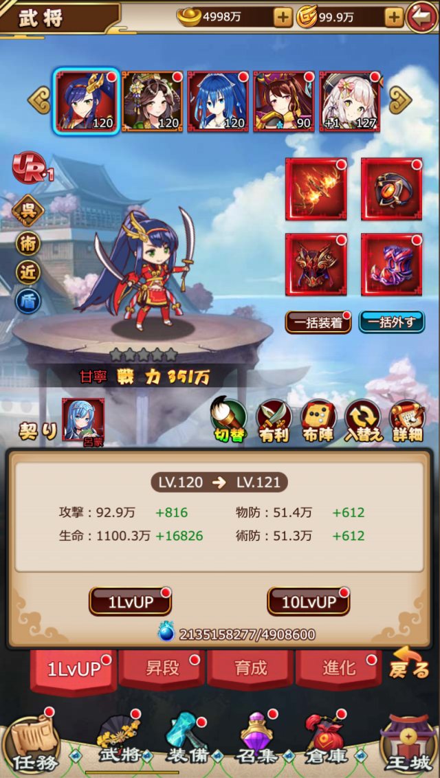 装備や武将の強化はもちろん、神獣や神器といった特殊な育成方法も!