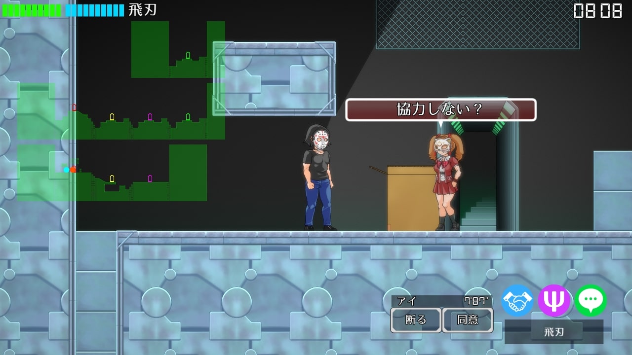 ステージは自動生成、視界外のプレイヤーやアイテムは、見えない。異能だけでなく、落ちている武器や盾、アイテムも駆使して戦う。