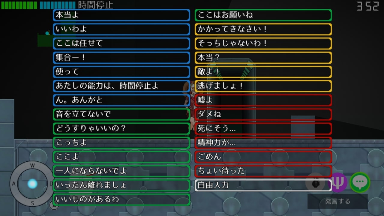 多数用意されたメッセージを、その場で発言できる。自由入力も可能。
