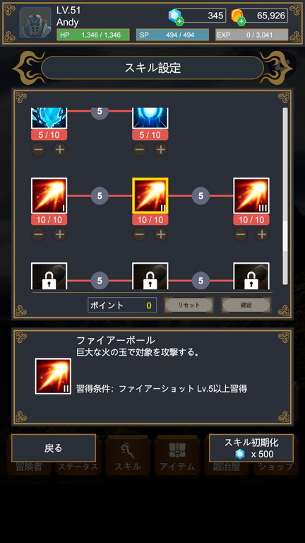 レベルアップで獲得するスキルポイントを自由に割り振って自分好みに育てよう。 攻撃魔法や回復スキルの他、各武器の攻撃力を上げるスキルなど様々なスキルを覚えることができる。 また、敵がドロップするジェムを使ってスキルリセットも出来るので他のスタイルを試したくなっても大丈夫!