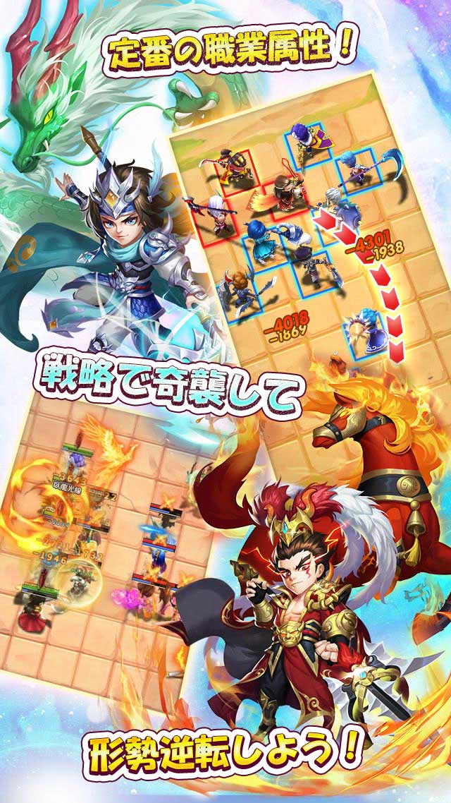 百人以上の有名な三国志武将が登場して、戦国時代に活躍すべく、英雄たちがあなたの登用を待っています。武将昇段、装備昇格、乗騎選択などの豊富な育成要素があなたの指導を待っています。10対10のオートチェスモードの戦闘で戦略がよければ、勝利は君のものだ!