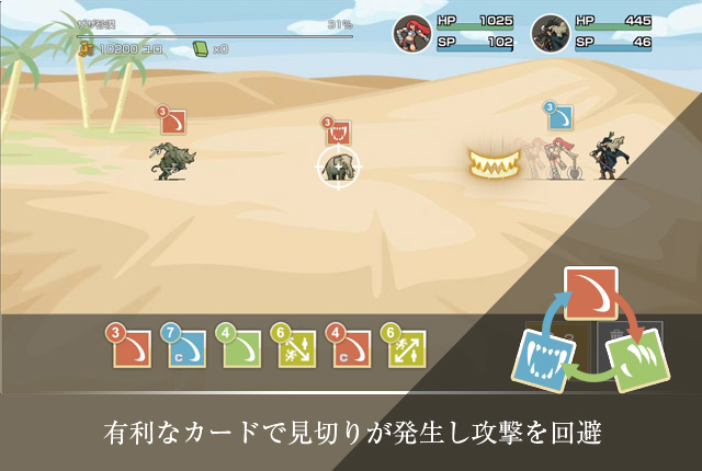 見切りが発生すると、攻撃を回避する以外に 手札を1枚ドローし、アタッカーのSPが1回復する。