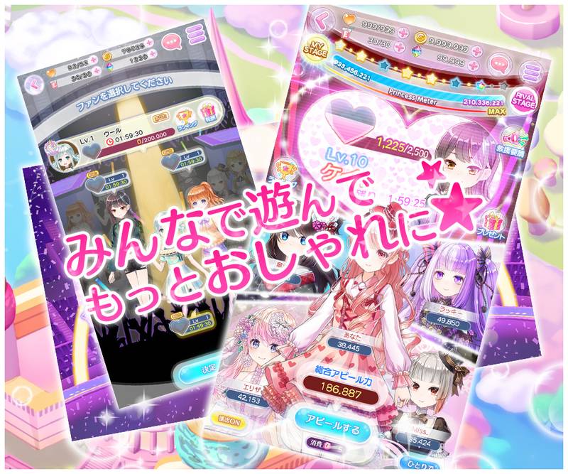 ステージではユニットのみんなで遊ぶことができちゃう。 最強ユニットになって、オシャレな衣装を手に入れよう♡ (公式サイトより引用)