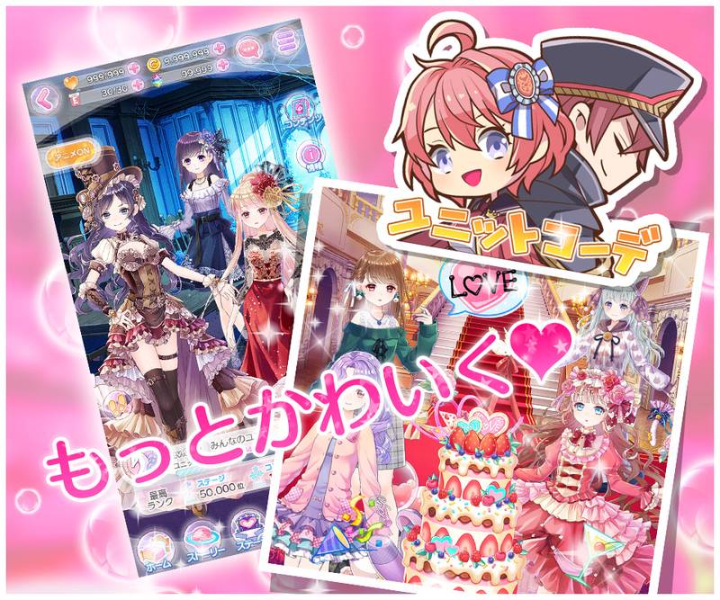 ユニットのみんなと素敵なコーデができちゃう♡ デコやスタンプを使って特別なコーデを作っちゃおう。 (公式サイトより引用)