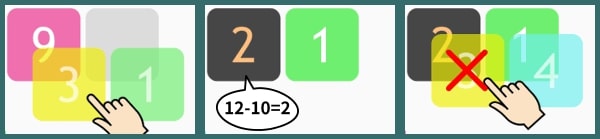 重ねた数字が11以上になると値が10マイナスされ、さらに数字を重ねることができなくなります