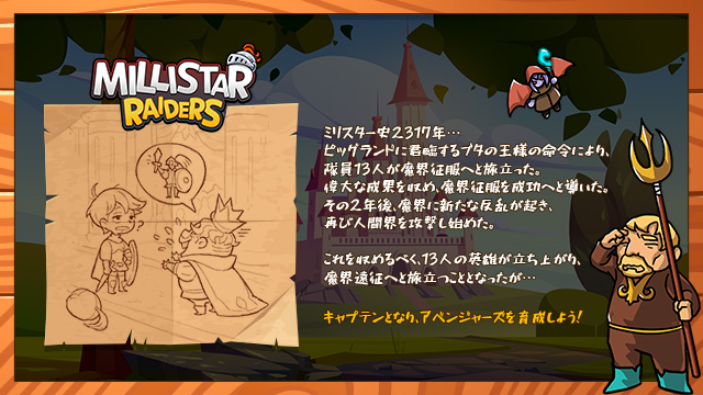 - [城の守備隊] ブタ城に侵入する魔族特殊要員を防げ! - [忘れられた錬金術師の洞窟] ガイコツ魔法使いが死守する洞窟 - [ミリスター遺跡] 13人の英雄が落とした紛失物を探そう - [ドラゴンダンジョン] ミリスター惑星1のユニークさん、レッドドラゴンに挑戦だ - [覚醒戦] 砂漠で繰り広げられる極限の対決 - [アレーナ] 真のアベンジャーズを決める正真正銘の一本勝負! - [迷宮] 突然変異したモンスターと第一魔王が住みつくダンジョン! - [略奪戦] 魔界の有名商人である闇ブローカーの宝倉庫を利用しよう!