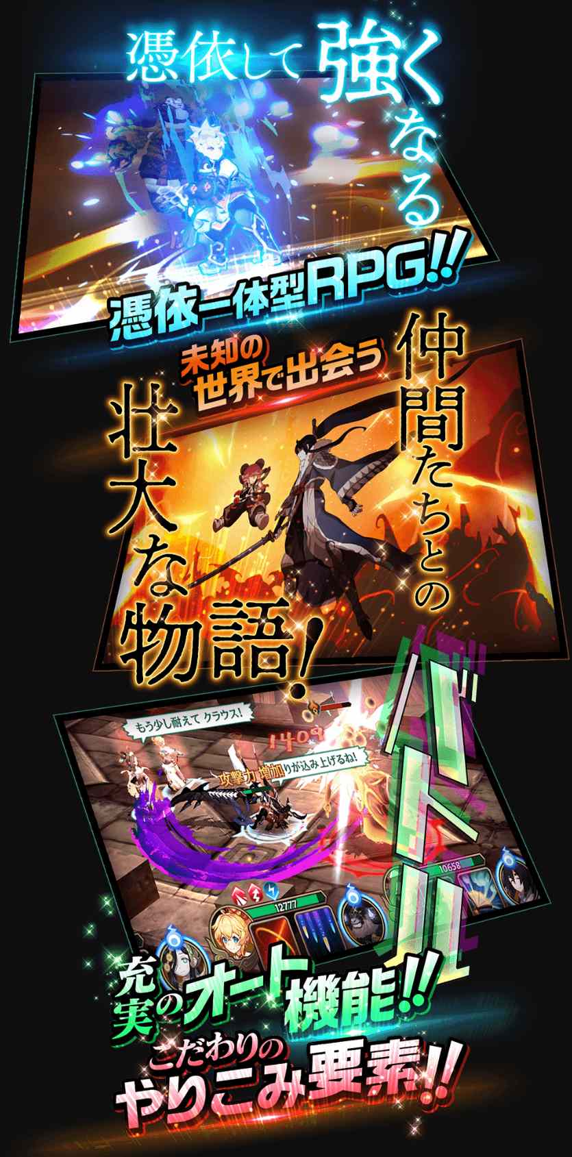 クロスクロニクルではバトルに臨む際、基本的に「人間」と「魔人」を組み合わせてパーティを編成します。この「魔人」を「人間」にアサインすることを【憑依】と呼びます。 人間1人に対し魔人1体を憑依させることができ、バトルにおいて強力な力と能力を手に入れることができます。