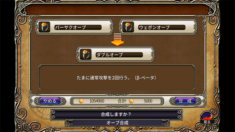 装飾品として装備できるオーブは、合成して強化可能。 威力アップを狙ったり、全く新しい効果を付与したり、好みに合わせて合成しましょう。