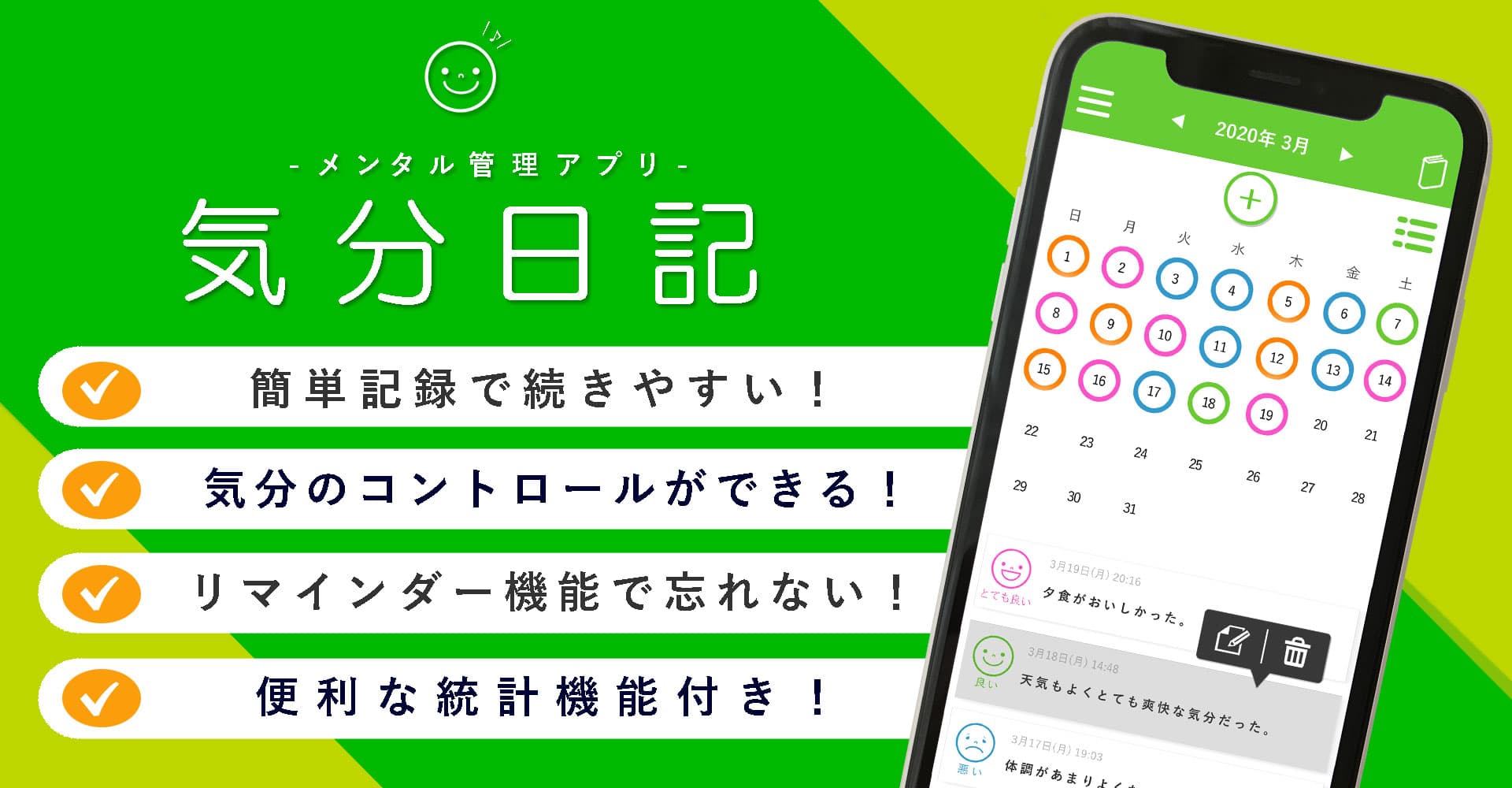 気分を記録してメンタルケア・ヘルスケアに役立てる日記アプリ!