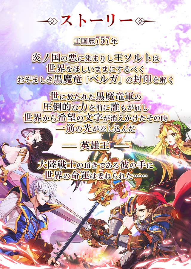 黒魔竜の災いは全大陸へと広がり、危機に直面した勇者たちは、あなたの旗下へと集結した。あなたの指示を仰ぐと、勇者たちはそれぞれ大陸の各地を目指し、あらゆる手段をもって黒魔竜の軍勢との戦いを繰り広げていった。その戦いの最期に待つものとは、黒魔竜との最終決戦に他ならなく、奴の消滅なしにはこの世界に平和は訪れない…