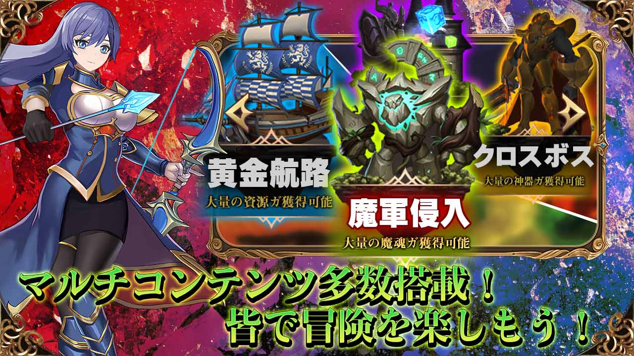 侵略拡大につれて強さを増していく、黒魔竜とその軍勢に対抗する為には、世界に散らばる数多の伝説装備や神器を集め、チームの強化に努めるしかすべはない。優れた勇者の助力を得られても、相手に相応しい装備を用意しない限り、その真価を発揮させられないのだ。大陸探索では、途中に古代宝石や陣法石などが多く獲得できるうだろう。それらを使えば、強力な魔法アイテムの合成も可能だ。