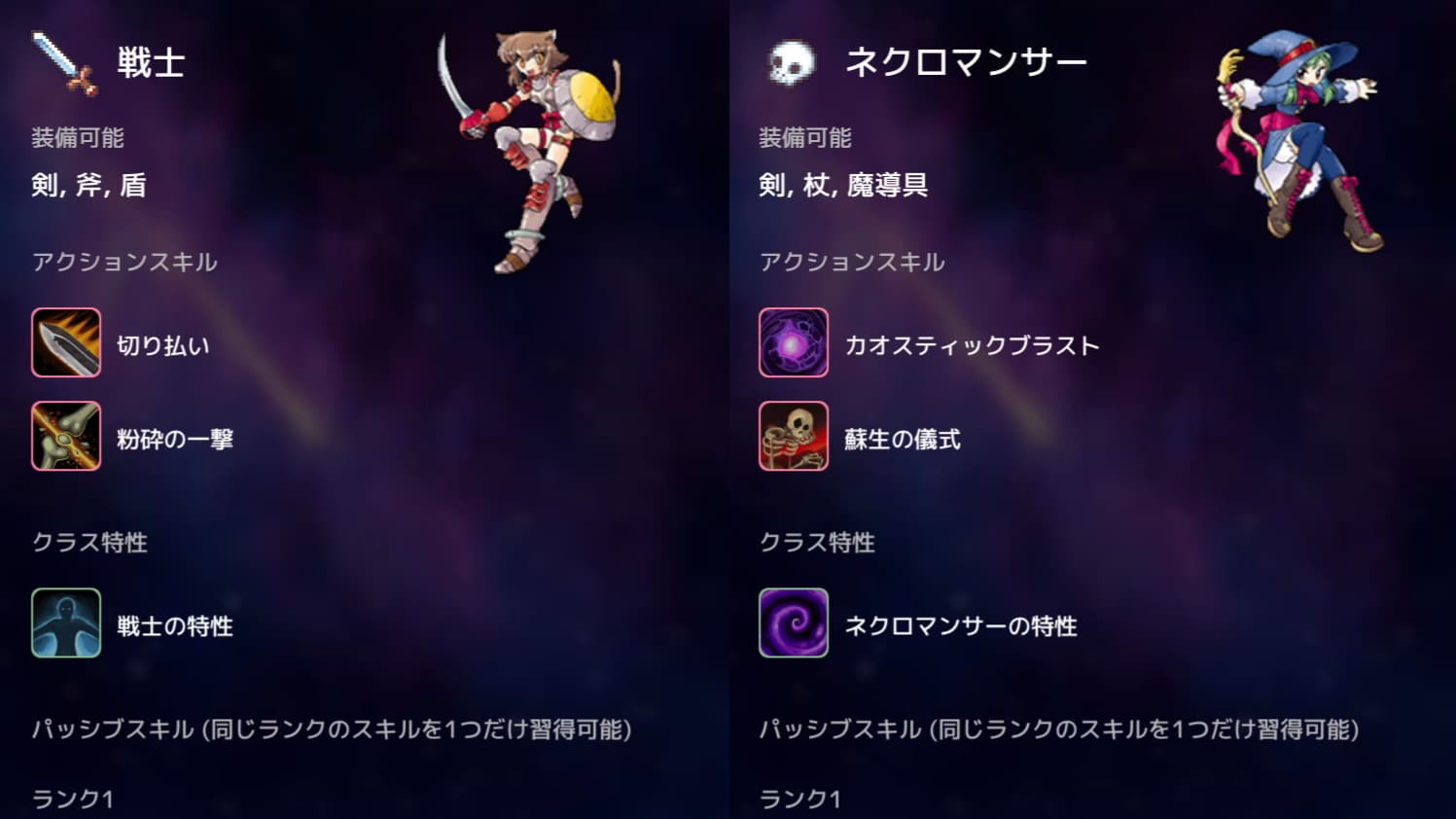 "戦士"や"魔法使い"などの様々なクラスを選択できます。