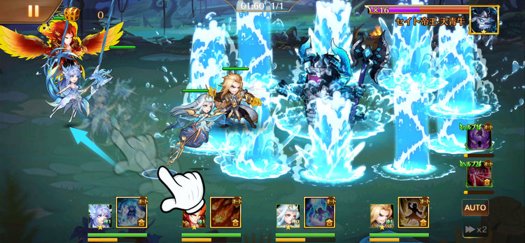 キャラクターを引っ張ることで、指定場所まで瞬間移動が可能。攻撃を仕掛けたり、敵のスキルを回避したりと直感的な戦闘が楽しめる。