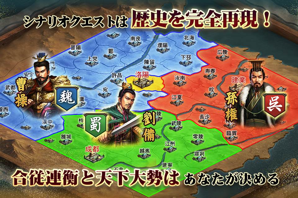 54の郡、合計162の都市。三国志の都市の分布を完全にシミュレート! 都市を複数のマスに分け、占領数と時間によってポイントを得て、ポイントの高い者が都市を占領できる。そのため、共同作戦が勝利の鍵だ。 隣郡を攻撃するルール、より戦略的に天下を制覇する。