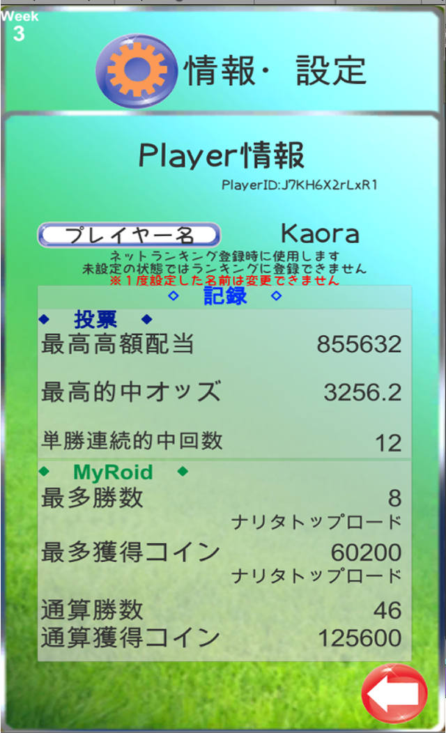 各最高記録をプレイヤー情報として記録します。 高額配当、オッズ、その他、MyRoidの各種記録をネットワークランキングに登録できます。 他のプレイヤーと競い合うことができます!