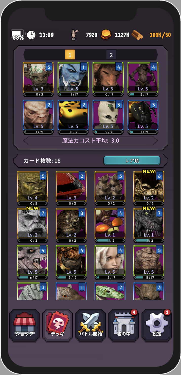 自分の戦い方に合わせたデッキを作って、他の魔王たちと戦おう。 デッキのモンスターを1体入れ替えるだけで大きく戦略が変わるのもこのゲームの大きな魅力だ!