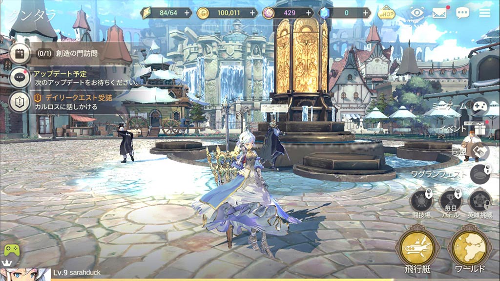街は好きなキャラクターで散策可能。 友人やギルドメンバーとコミュニケーションをとるための ビジュアルロビーとしても活用することができます
