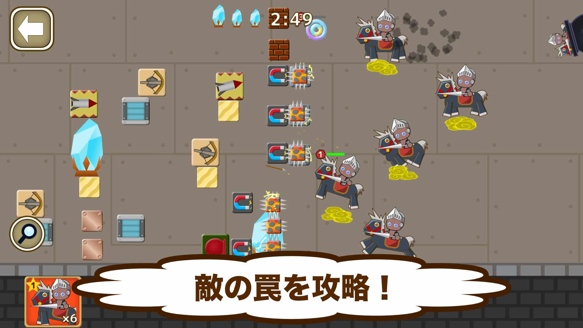 いろいろな敵の罠のブロックがあるのでうまく攻略しましょう!