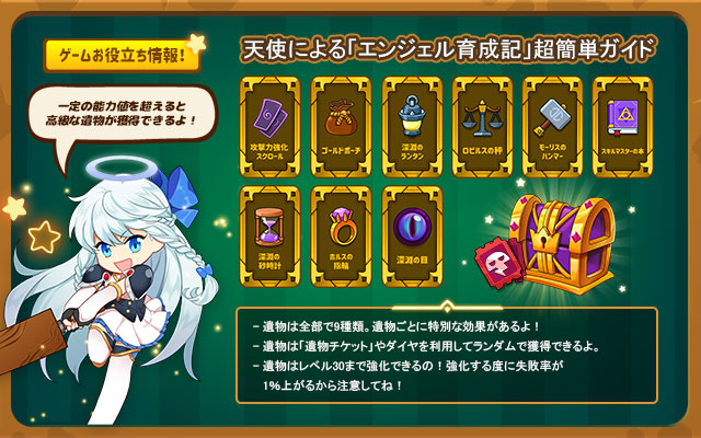 遺物を保有しているならば、さまざまな特殊効果を体験するとができる。 遺物を強化すると特殊効果もさらにアップグレードのチャンス!? エンジェルの秘められた力を全て覚醒させよう!
