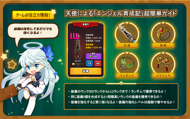 戦闘で勝利するためには強い装備は必須アイテム! 装備は保有しているだけでも強くなります。 強化と超越、さまざまな方式で潜在能力を開放!