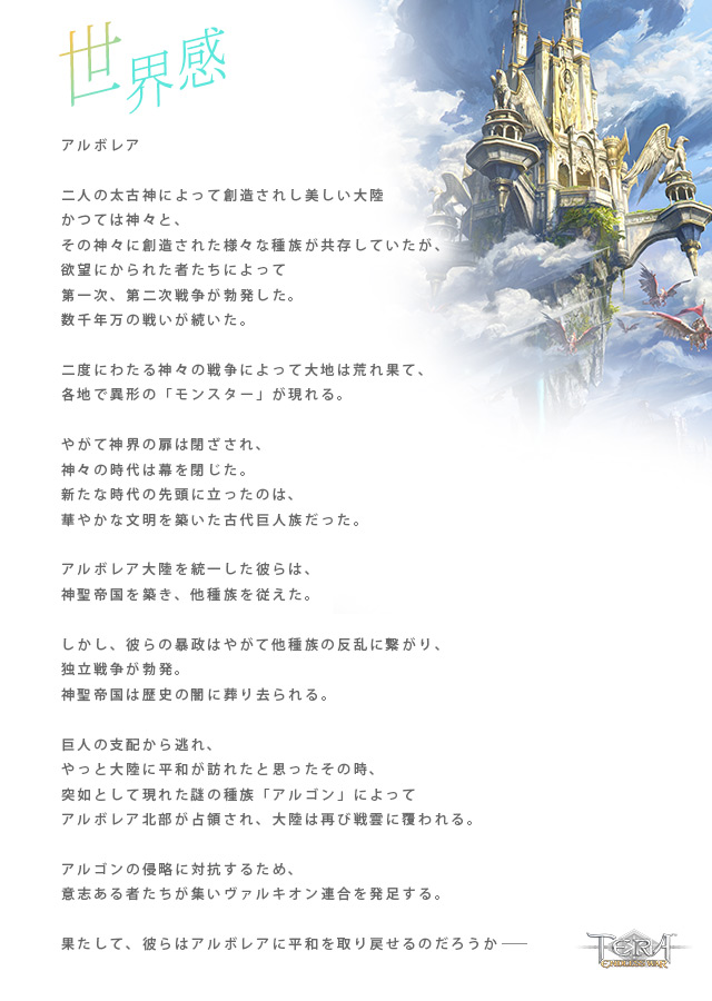 Unreal 4 Engineの利用で、英雄やユニットだけでなく、モンスターや建物など、超ハイクオリティー で美麗なグラフィックを実現。本格的なゲーム性だけでなく「TERA」そのままの世界観を体感頂けます。