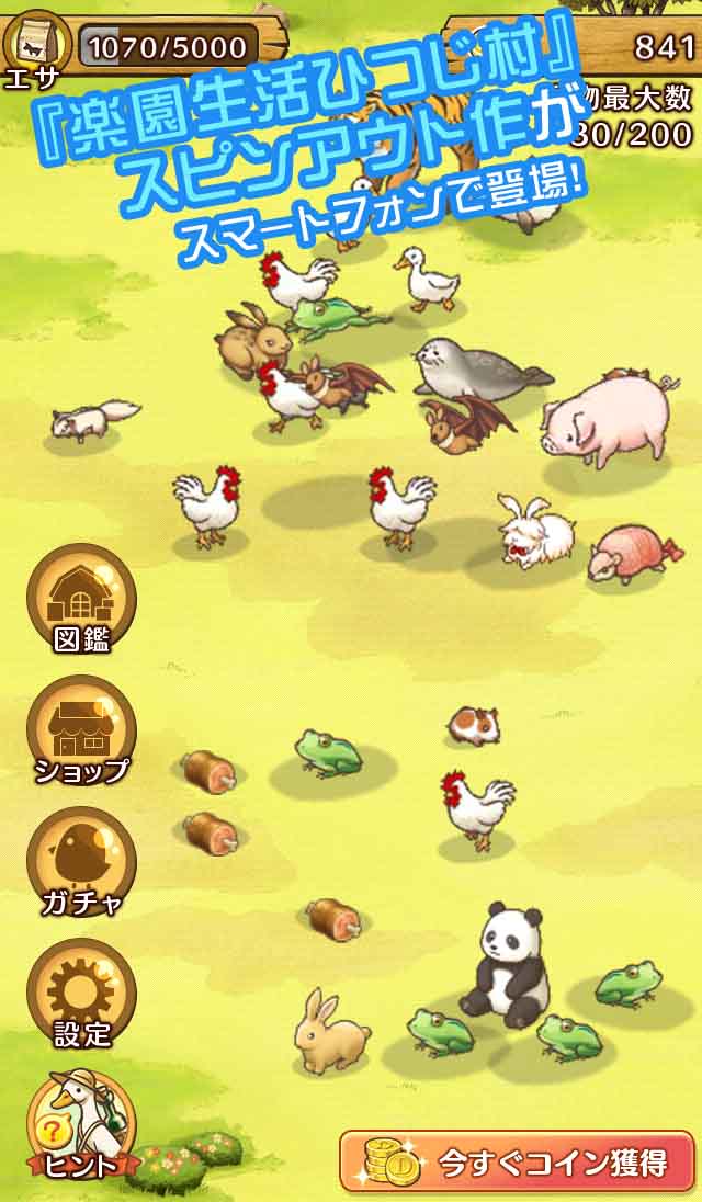 ============================= 27万人以上登録の『楽園生活ひつじ村』スピンアウト作が登場! 動物を育成・増やして「肉」にする無料育成ゲーム!! ============================= 牧場・農場ゲームの代表作『ひつじ村』シリーズ最新作が、iPhone / iPad 用アプリになって登場! ほのぼのした見た目で、育成ゲーム好きな人にオススメ。 空いている時間にプレイするだけの簡単ゲームです。 【遊び方】 ①ショップでエサを買う。 ②好きな動物を図鑑から選んで牧場に置き、増えるのを待つ。 *エサが0になると動物は増えなくなるので注意! ③増えた動物を収穫して肉にして、続けて肉をタップしてコインを稼ぐ。 *スワイプすると一気に狩り取れます。 たったのこれだけ3ステップ! 稼いだコインで新しい動物を購入したり、無料ガチャで珍しい動物をゲットできたりも! 獲得した動物は図鑑に登録されます。 図鑑を完成させて、目指せ動物育成マスター! *一部有料のコンテンツがあります。
