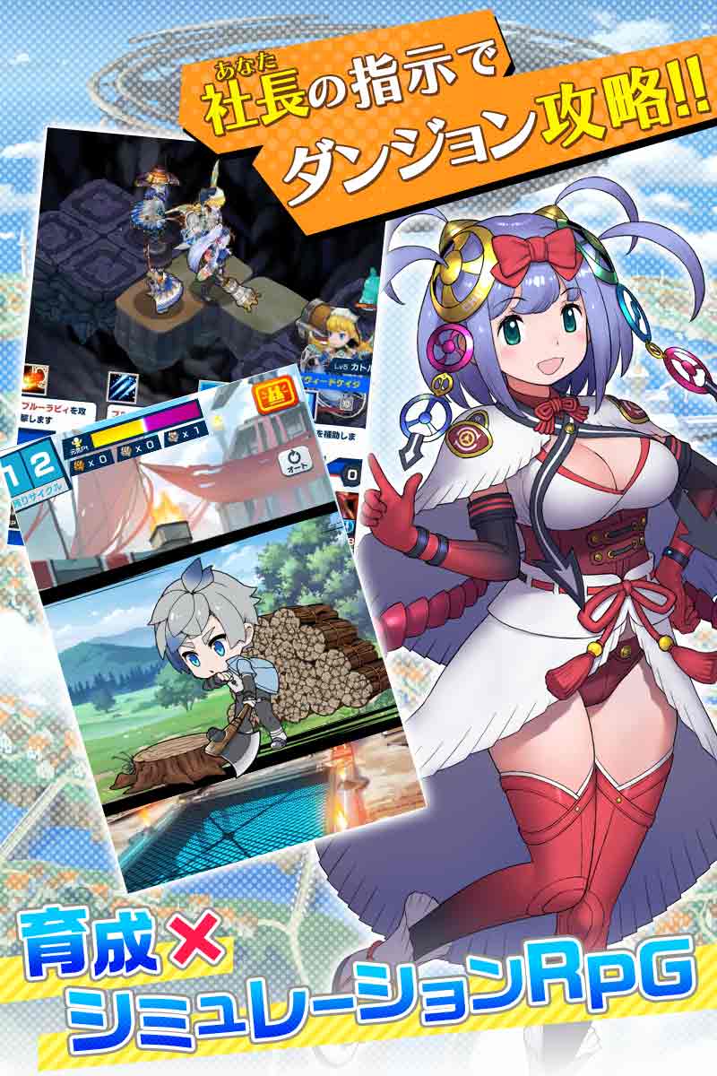 社長の指揮でダンジョン攻略 あなたは社長として、冒険者のパーティーを編成してダンジョンに派遣! 「マジュー」と呼ばれるモンスターを倒し、ダンジョンを攻略し、アイテムや報酬を手に入れよう! 頼れる秘書のサポートで戦況が大きく変化するぞ!