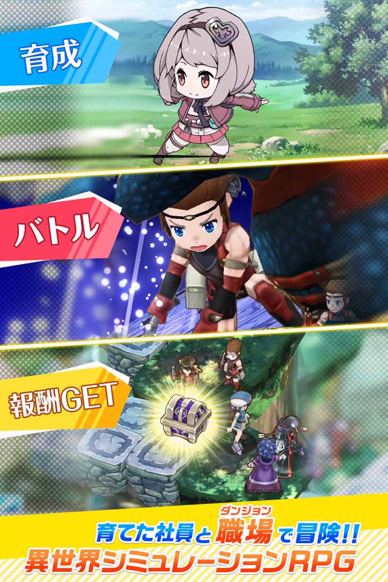 優秀な社員を育成しよう 「社員育成」と呼ばれるモードで冒険者はあなた自身の手で自由に育成できる! 戦士や魔法使いなど6種の職業から選ぼう! また、「サポメン」と呼ばれる仲間を連れていくとイベント発生! あなたにバトルで役立つ特別なスキルを教えてくれる!