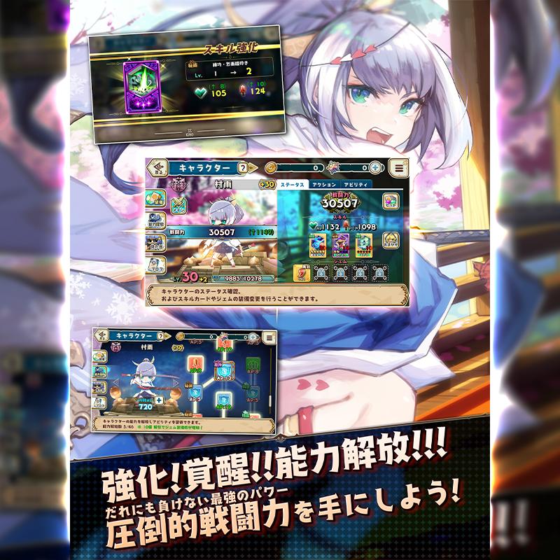 自分が育てた武姫(ぶき)を操作して、他のプレイヤーと対戦だ! スキルや装備の組み合わせは無限大! クエストでハック&スラッシュ!
