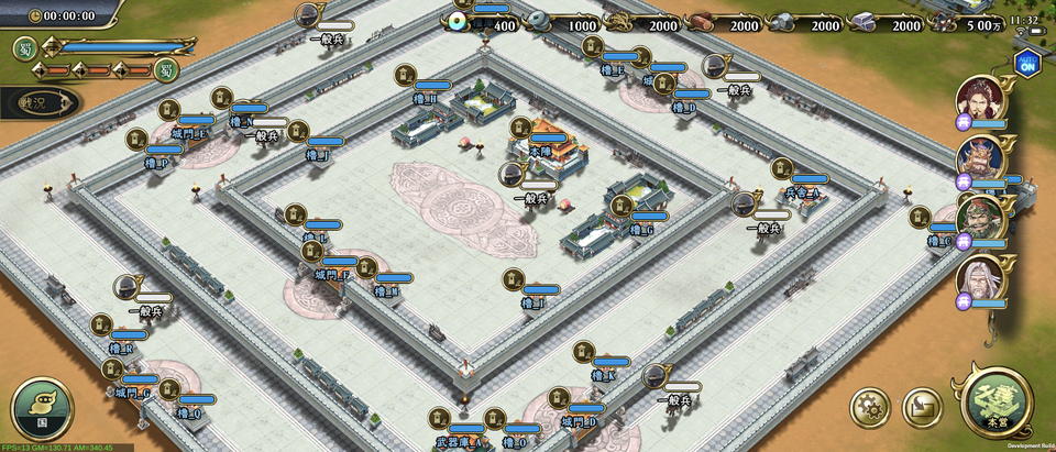 部隊や兵器を使いこなして城を獲れ! 城内マップはバリエーションが豊富な全30種以上!城ごとに戦略を練って攻城しよう。 城内では自部隊を操作して、相手部隊と直接バトルしたり、兵器を活用して、「攻め」「守り」に戦術の幅を持たせよう。 兵器例 ・「破城槌」城門に対して高ダメージ ・「投石機」一定間隔で射出し、周辺の施設や部隊に対して範囲ダメージ ・「簡易基地/兵舎」出撃地点として利用可能 ・「祭壇」精霊を召喚し部隊をパワーアップ ・「雲梯」城壁を乗り越えることが可能 ・「馬防柵」通路を塞いで侵攻妨害 ・「弩砲」設置箇所周囲の部隊へ強攻撃
