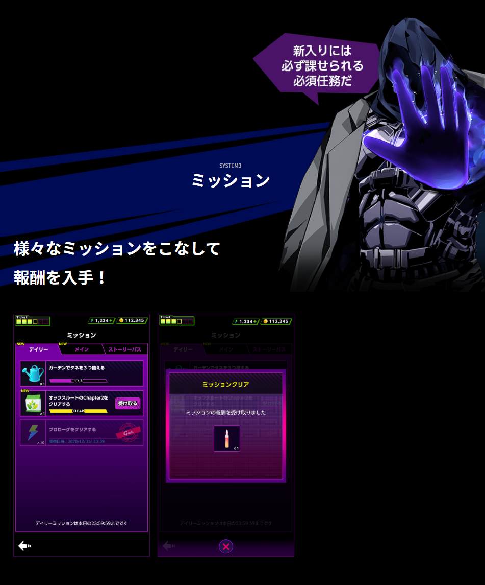 ストーリーを読み進めることができるエナジーなど、役立つアイテムがもらえる! 毎日挑戦できるデイリーミッションのほか、一度きりの特別なミッションもあるぞ。 (公式サイトより引用)