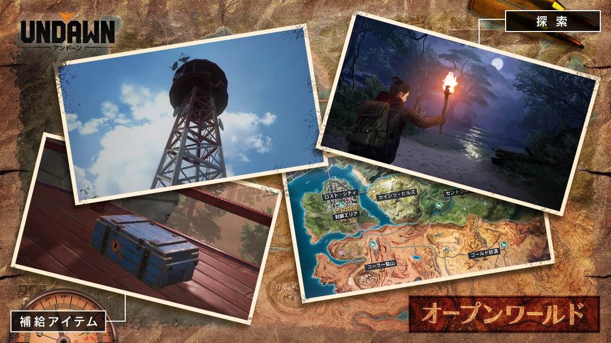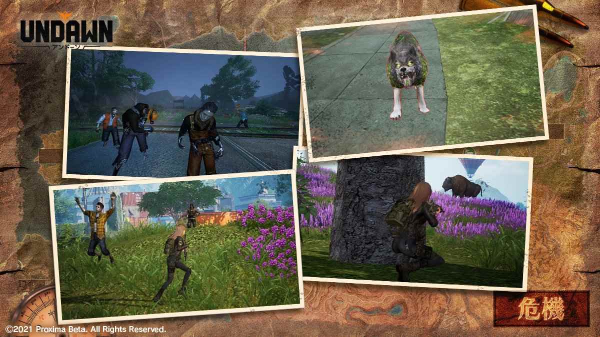 Undawnにおけるマップは非常に広大且つシームレスに設計されており、プレイヤーは平原、森林、鉱山を横断し、廃墟となった都市を探索することができます。 9つの異なる地形環境の中で、プレイヤーは様々な素材や資源を集め、狩りや釣りをして生き延びていくことになるでしょう 。 凶暴な野生の獣、いつ起こるかわからない、そして生存を脅かしかねない酸性雨や砂嵐といった極端な異常気象の発生など、常に変化する状況に対して決断を迫られ続けます。あなたは果たして生き残ることが出来るでしょうか。