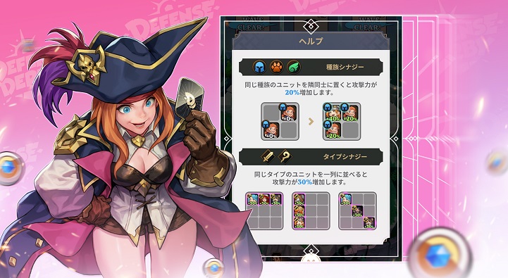 同じタイプや種族のユニットを並べると強力なシナジーが発生。状況に合わせた配置換えでモンスターを撃退しよう!