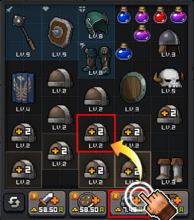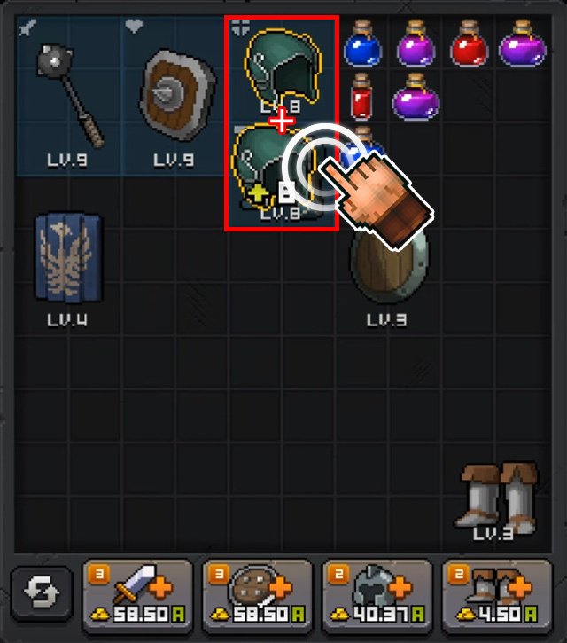 同じレベルの装備を選択!移動させたら合体! 自動装備合体システムも搭載!