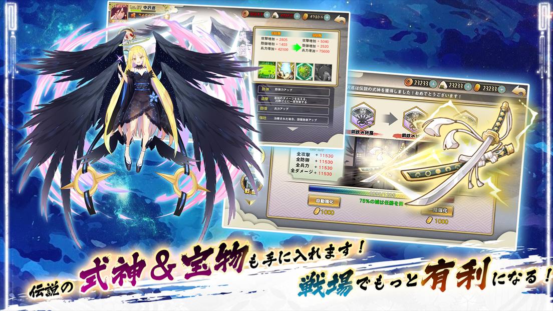 戦闘中、一定の条件を達成すると、覚醒者は式神を召喚して力を貸してもらうことができます。式神は敵に強力な一撃を発し、一定の確率で敵にヘビーアタック効果を与えたり、味方の戦姫を蘇生したりすることができ、不利な戦いの強い味方になってくれます。 ゲームでは20種類以上の家宝があり、どれも貴重な宝物です。プレーヤーは自分の匠心を高めて獲得することができます。宝物は追加の攻撃力属性と防御力属性を付与します。