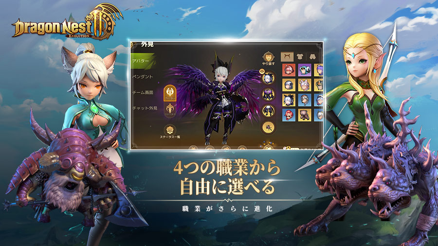 4種類の職業に32もの選択肢があるため、どのようなプレイスタイルでも自分に合った特徴的なキャラクターを育てることができます。