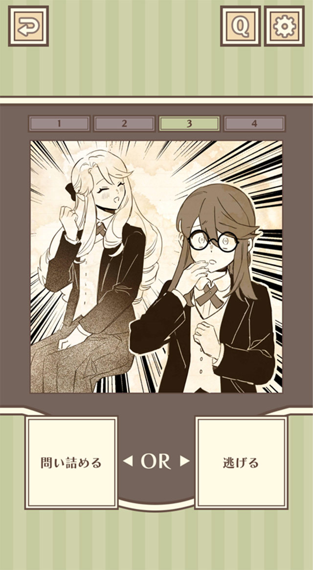操作は問題を読んでタップするだけ。二択から正しい選択肢を選んでストーリーを進めよう!