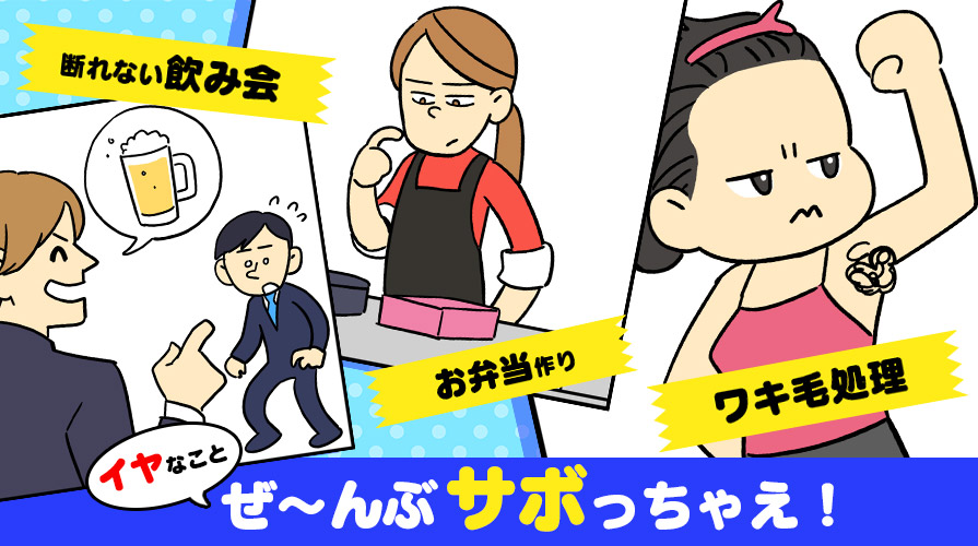 問題のイラストを見て、上手くサボれそうなアイテムをイラストにスワイプ! 2択から選ぶだけだからとっても簡単です。 正解か不正解かによって結果のイラストが変わります。 あえて不正解を選んで悲しき末路を見るもよし、正解を選んで楽々乗り切るもよし!