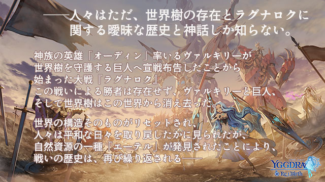 神族の英雄「オーディン」率いるヴァルキリーが世界樹を守護する巨人へ宣戦布告したことから始まった大戦『ラグナロク』…この戦いによる勝者は存在せず、ヴァルキリーと巨人、そして世界樹はこの世界から消え去った。